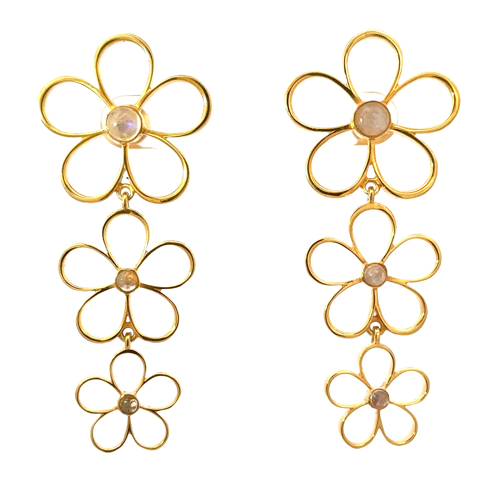 Vermeil Triple Open Flower Earring with Moonstone Center