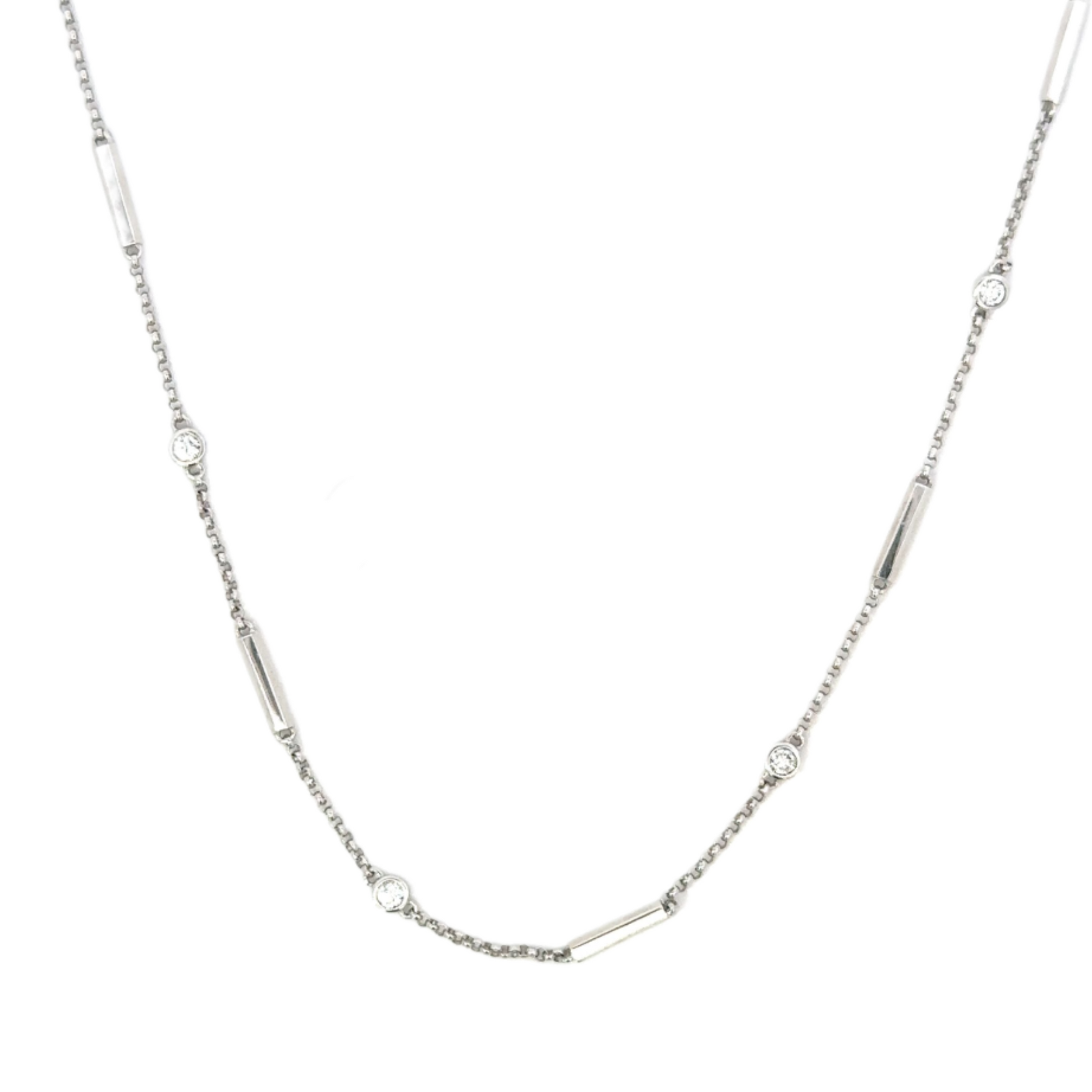 White Gold Thin Bar and Chain Bezeled Diamond Necklace