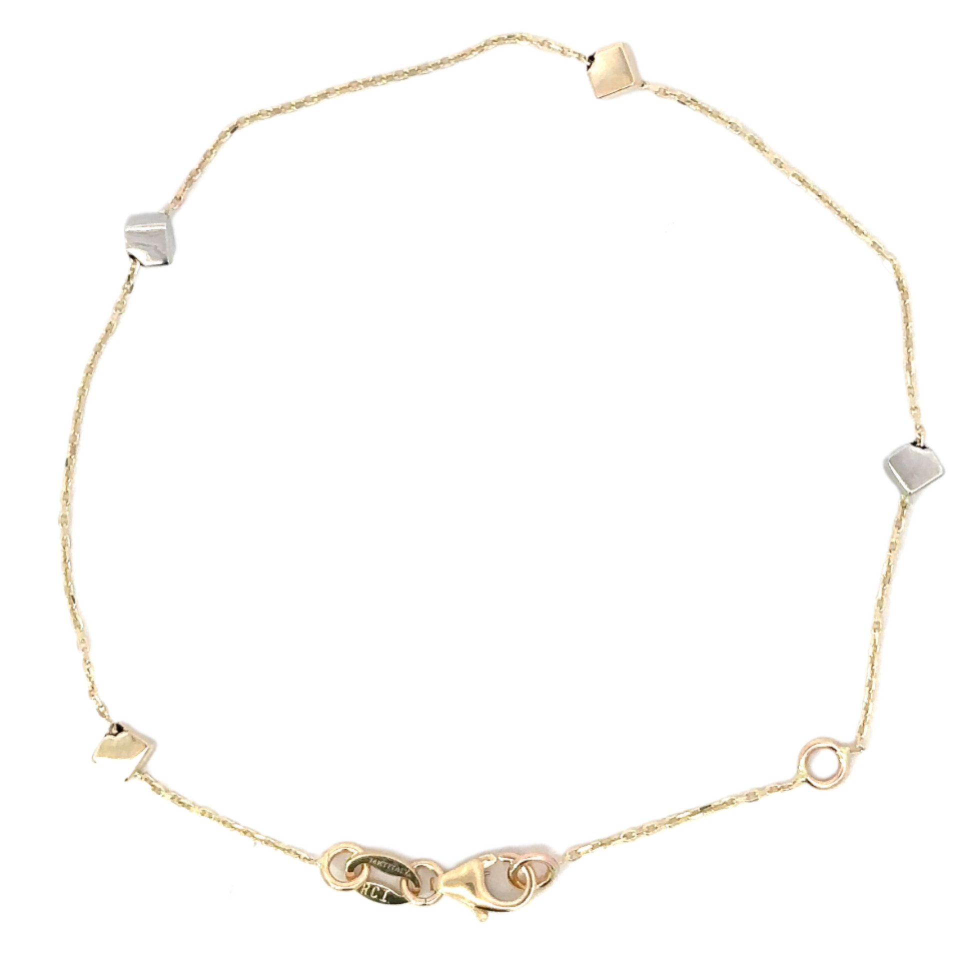 Crafted in 14K yellow and white gold, this polished cube bracelet measures 7.5 inches with an adjustable length for a precise fit.