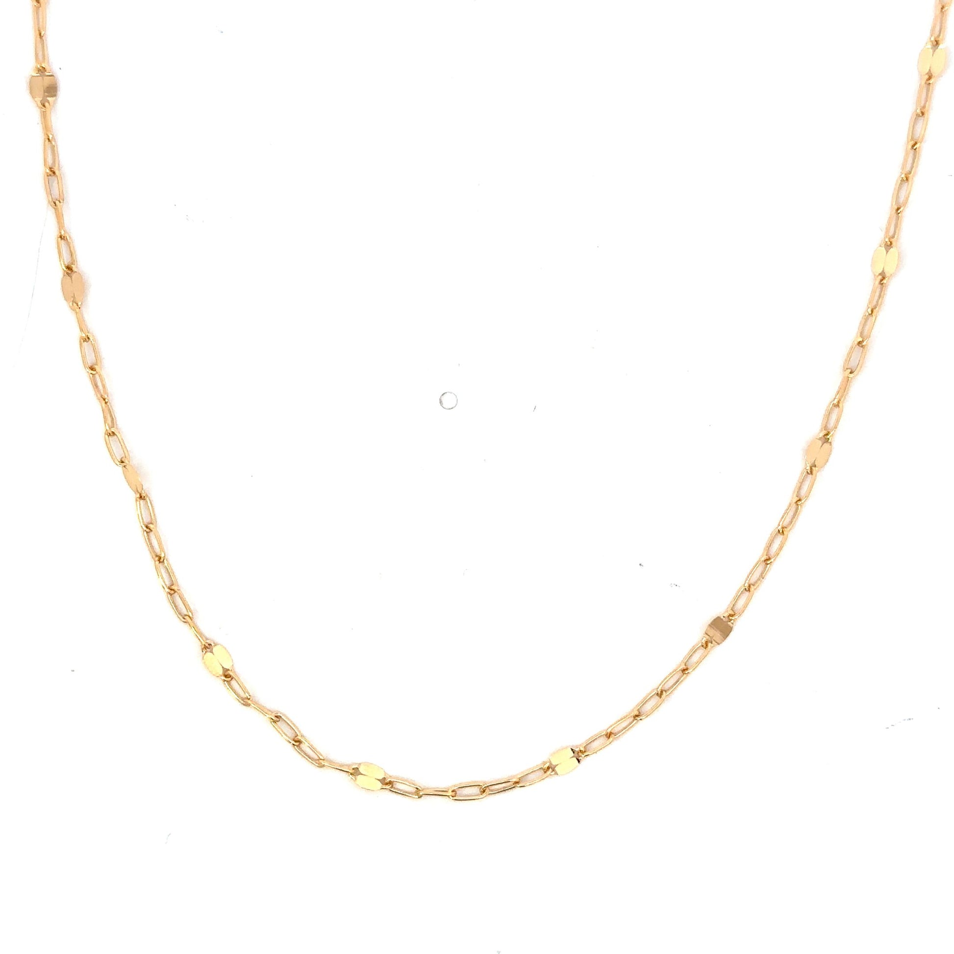 Yellow GF Tiny Paper Clip and Oval Station Chain Necklace