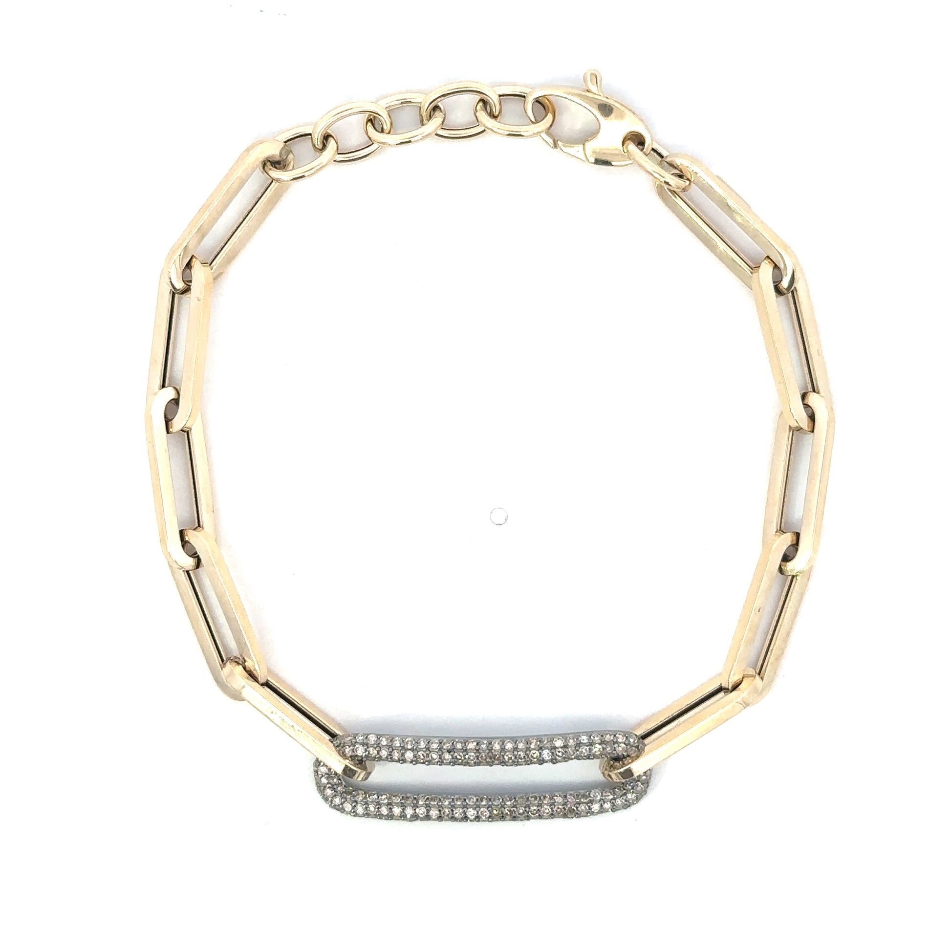 Yellow Gold 16mm Paperclip Bracelet with 30mm Sterling Pave Accent