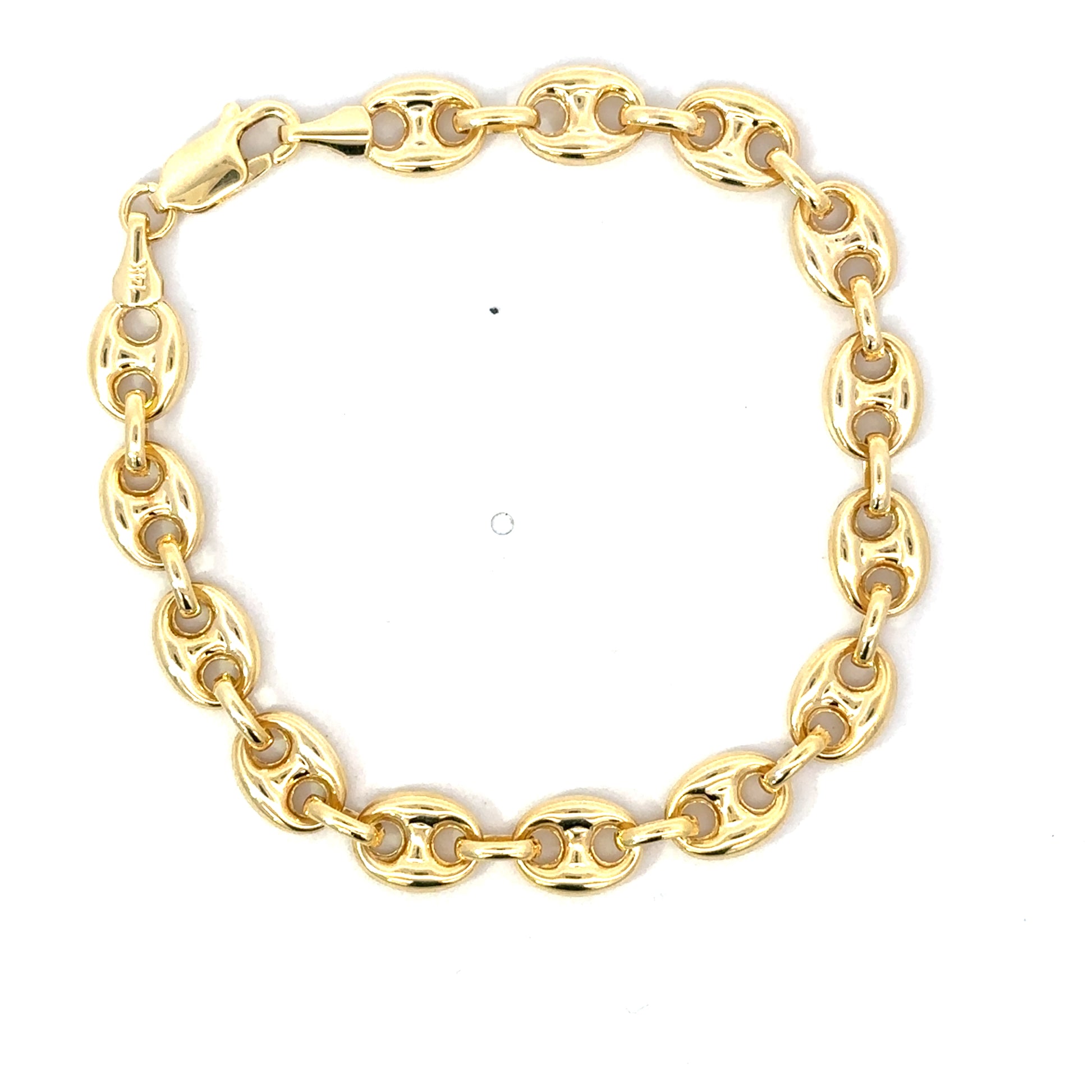 This 7" bracelet features a 6.9mm mariner link design crafted in 14k yellow gold, combining durability with refined style.