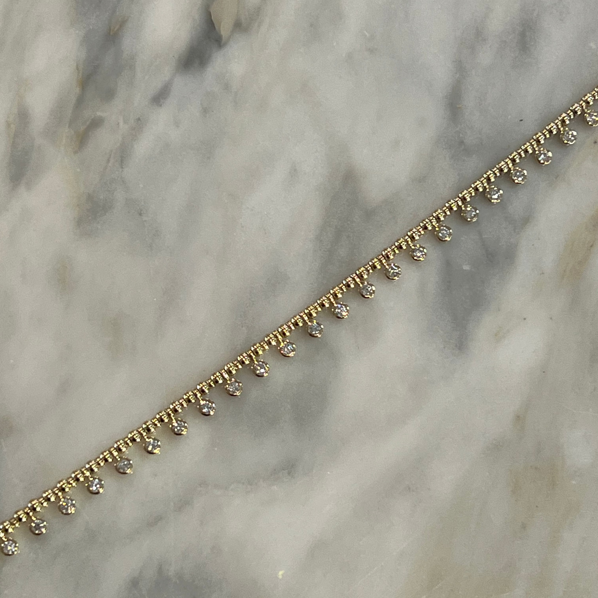 Yellow Gold Alternating Bead Chain Bracelet with Multi Bezeled Diamond Drops