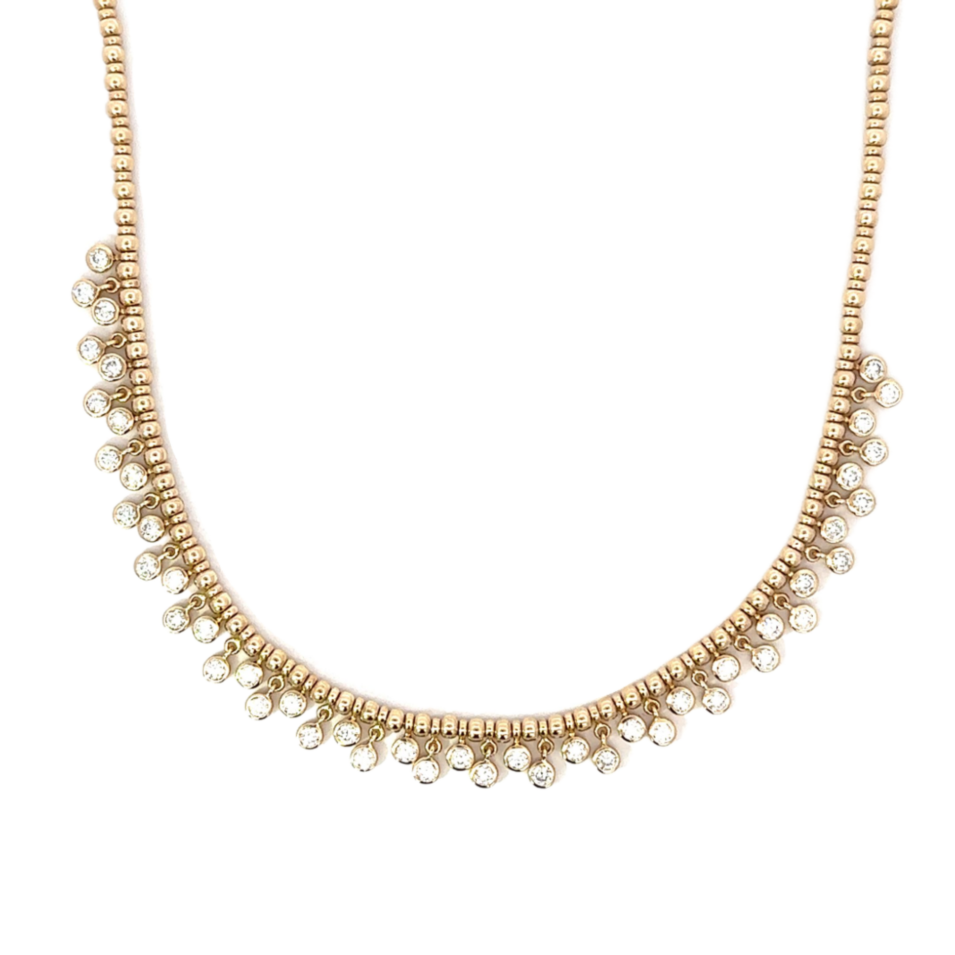 Yellow Gold Alternating Bead Chain Necklace with Multi Bezeled Diamond Drops