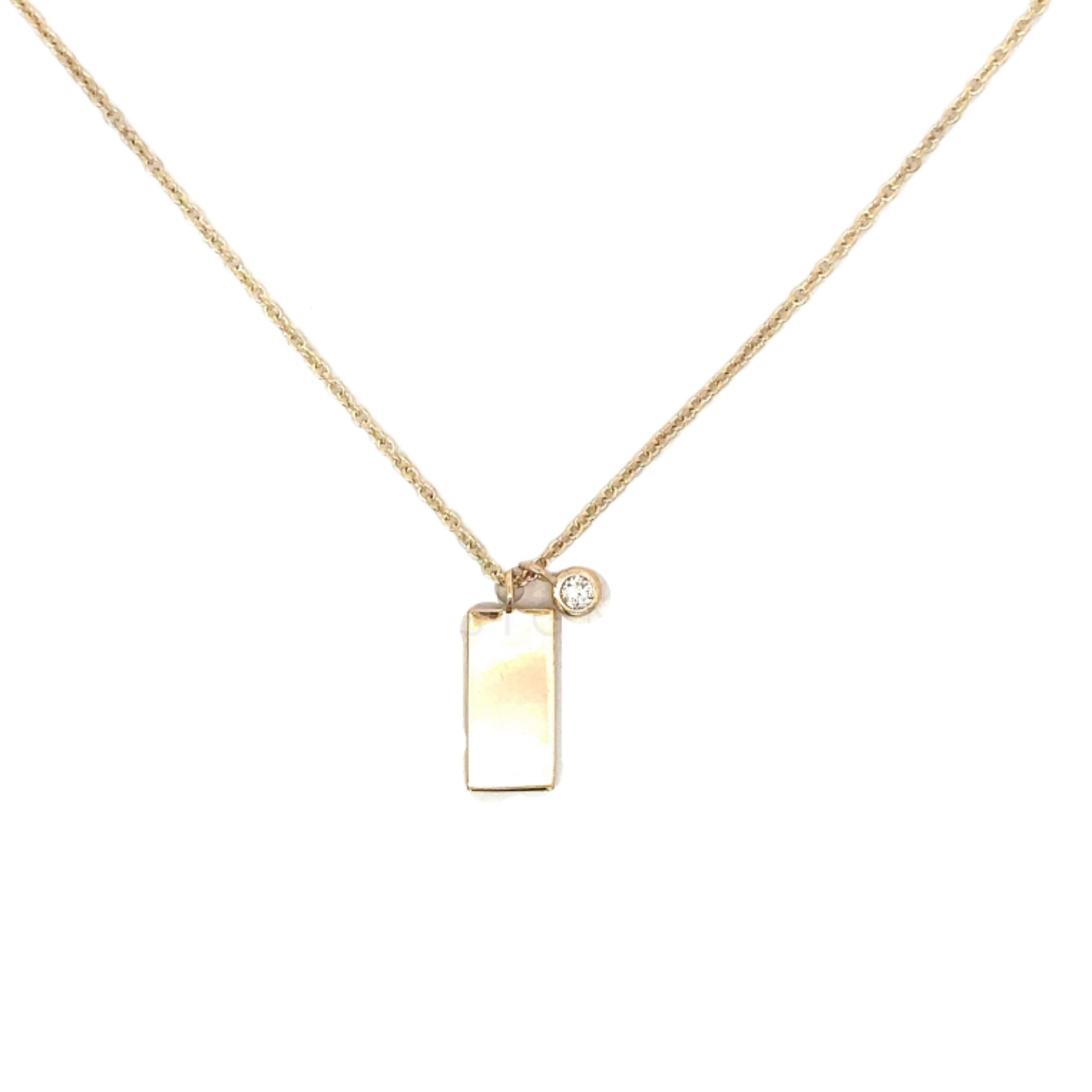 Yellow Gold Blank Rectangle and Bezeled Diamond Charm Necklace