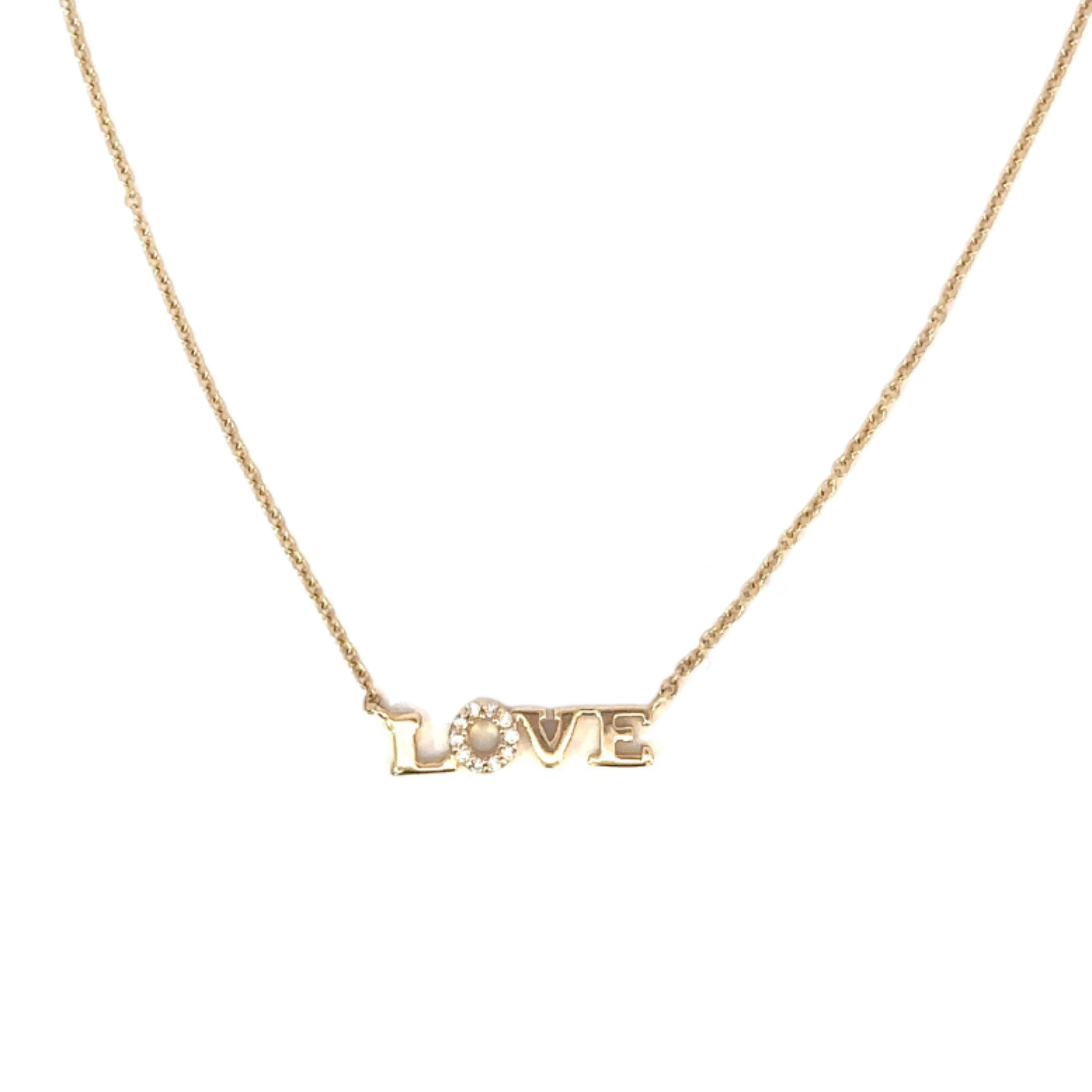 Yellow Gold "LOVE" Necklace with Pave Diamond "O"