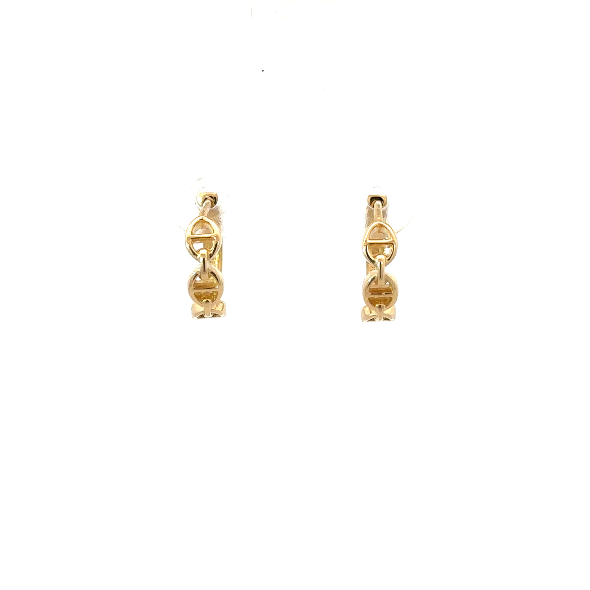 These 12mm huggies are crafted from high-quality 14k yellow gold, showcasing a sleek oval mariner design for a refined look.