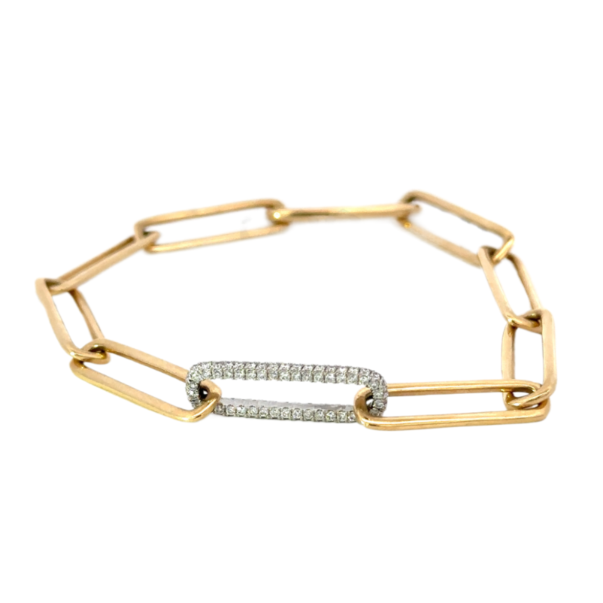 Yellow Gold Paper Clip Bracelet with Pave Diamond Link