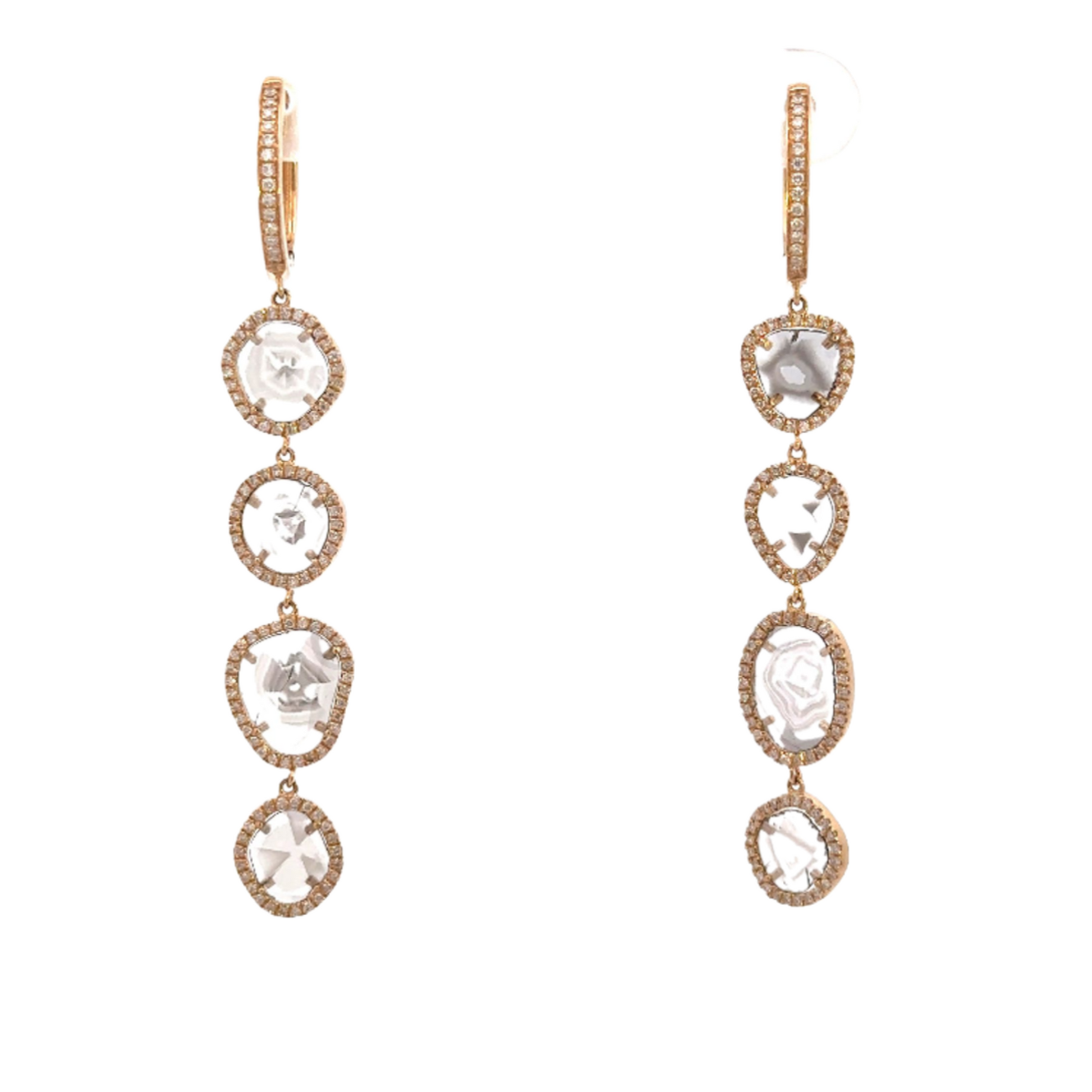 Yellow Gold Pave 4 Sliced Diamond Drop Earring