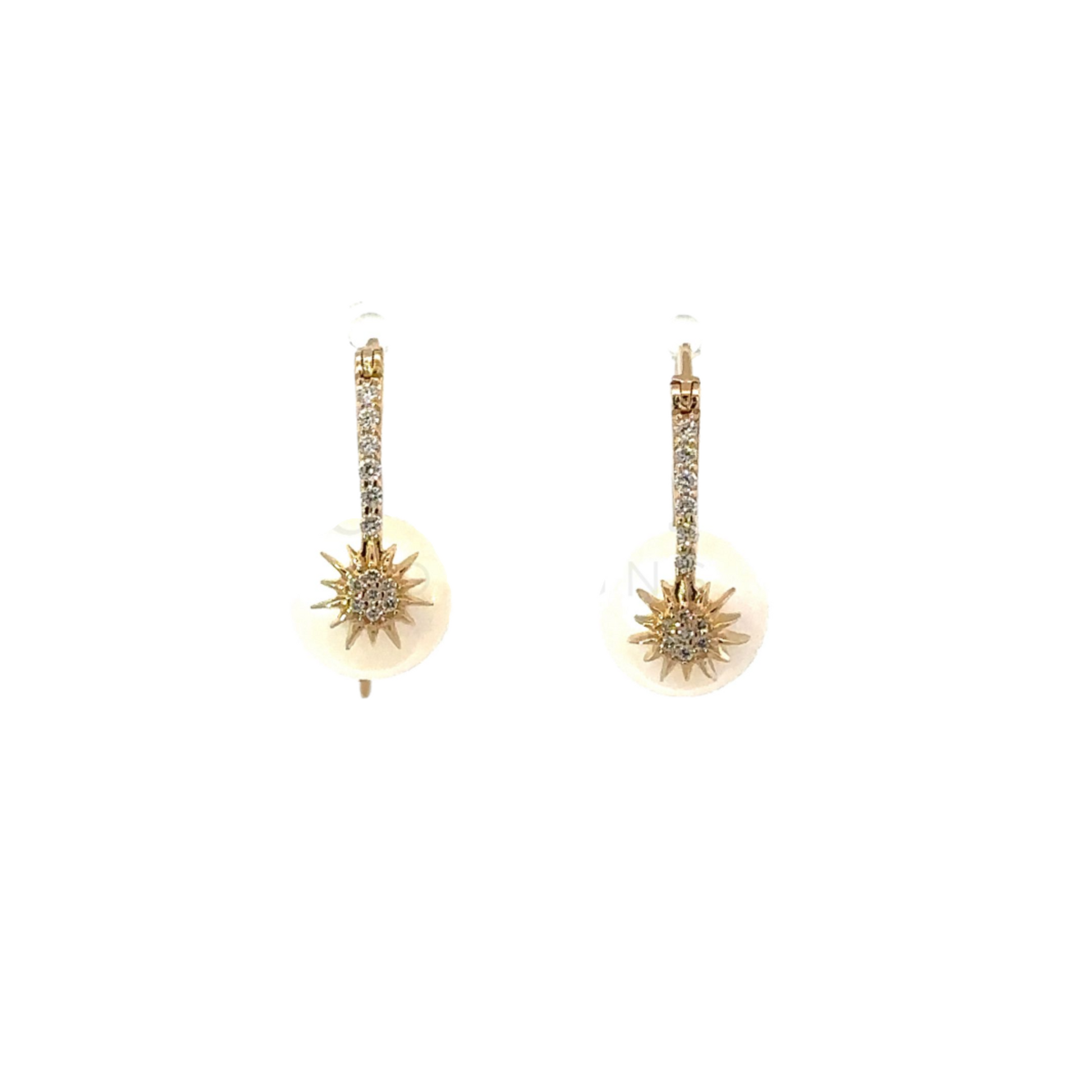 Yellow Gold Pave Latch Back Earrings with Sunburst Accent