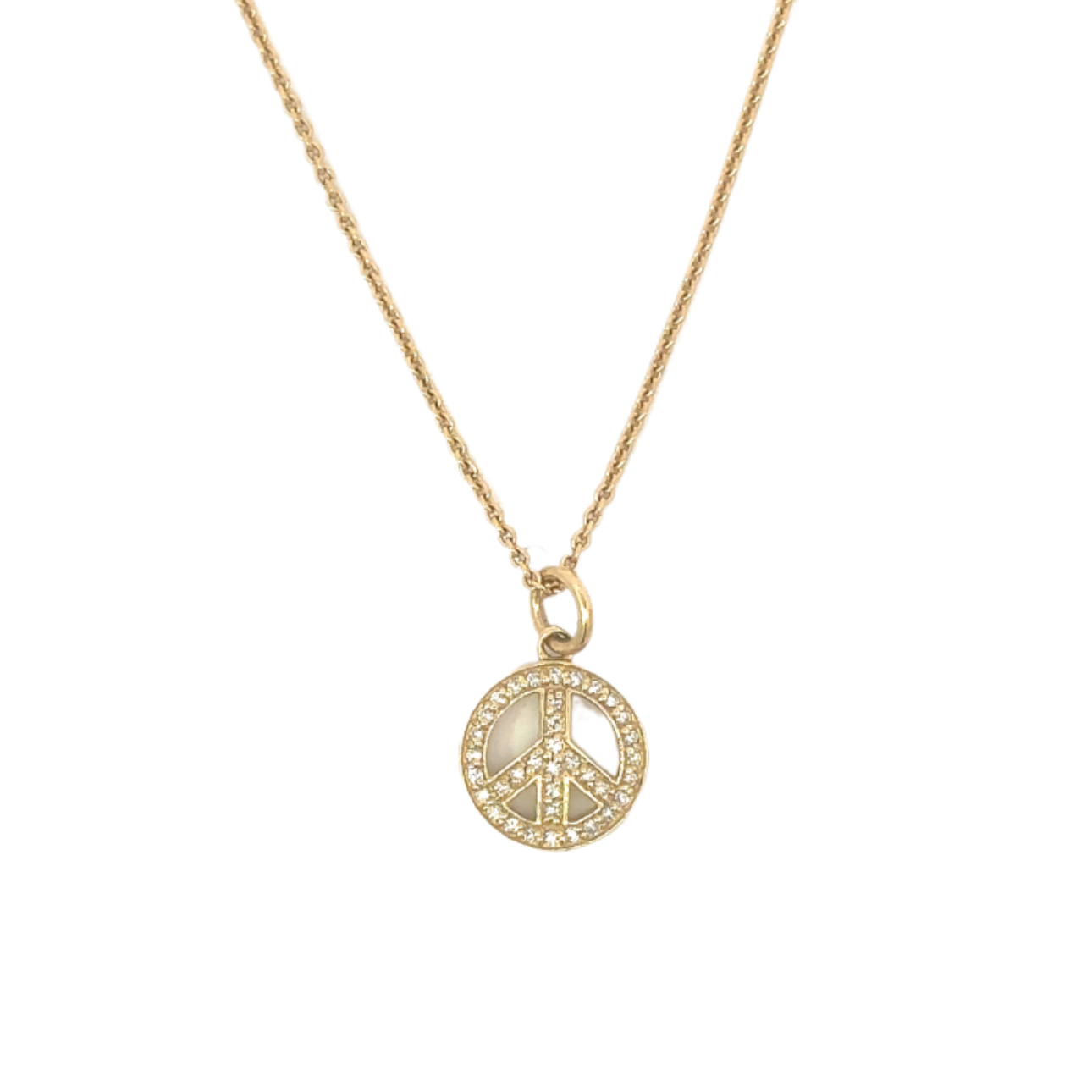 Yellow Gold Pave Peace Sign Charm Necklace