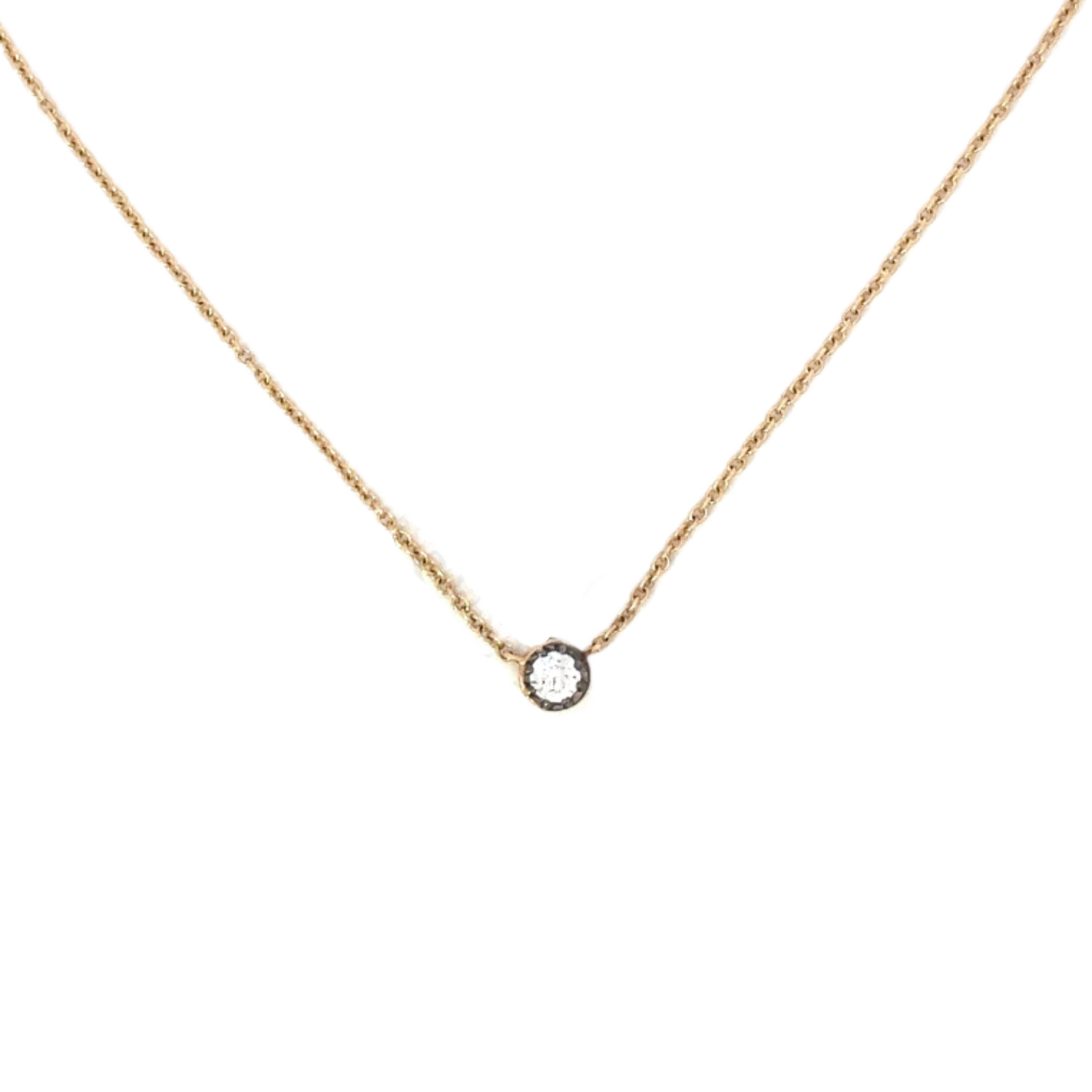 Yellow Gold Single Bezeled Diamond Rhodium Necklace