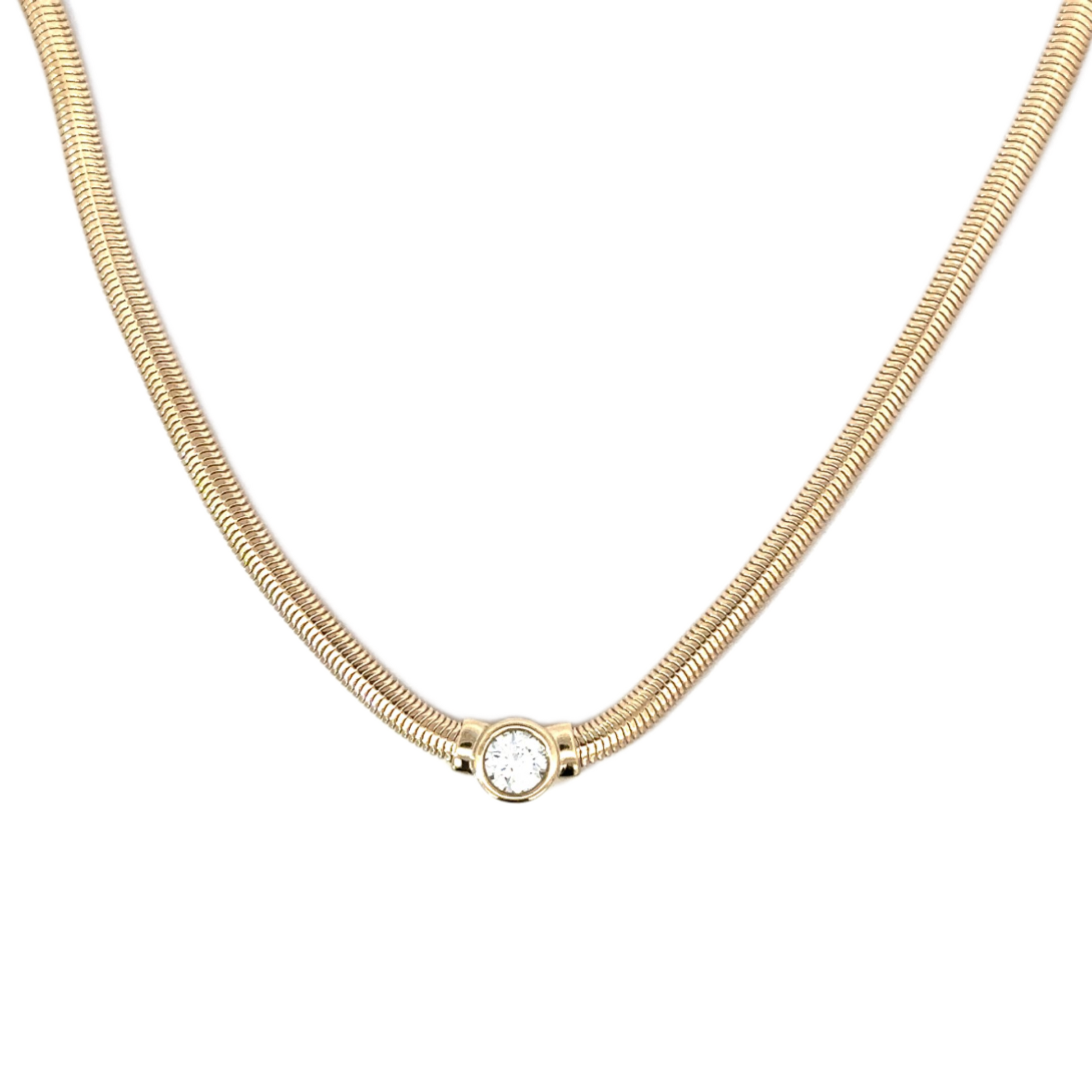 Yellow Gold Snake Chain Necklace with Solitaire Diamond