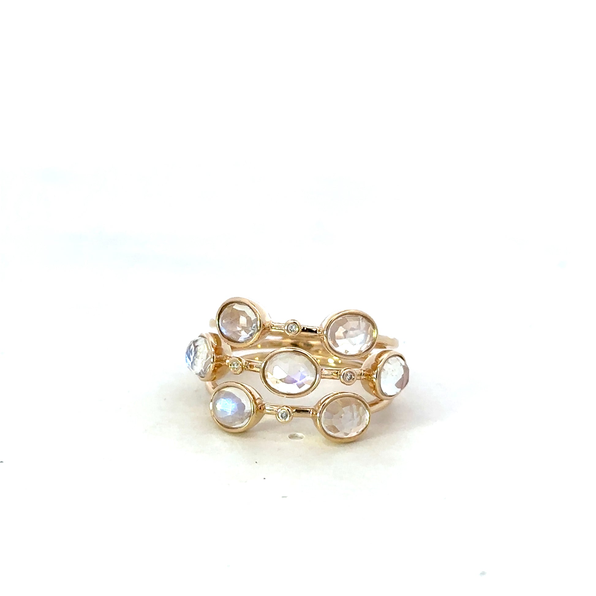 Yellow Gold Triple Row Moonstone and Diamond Ring
