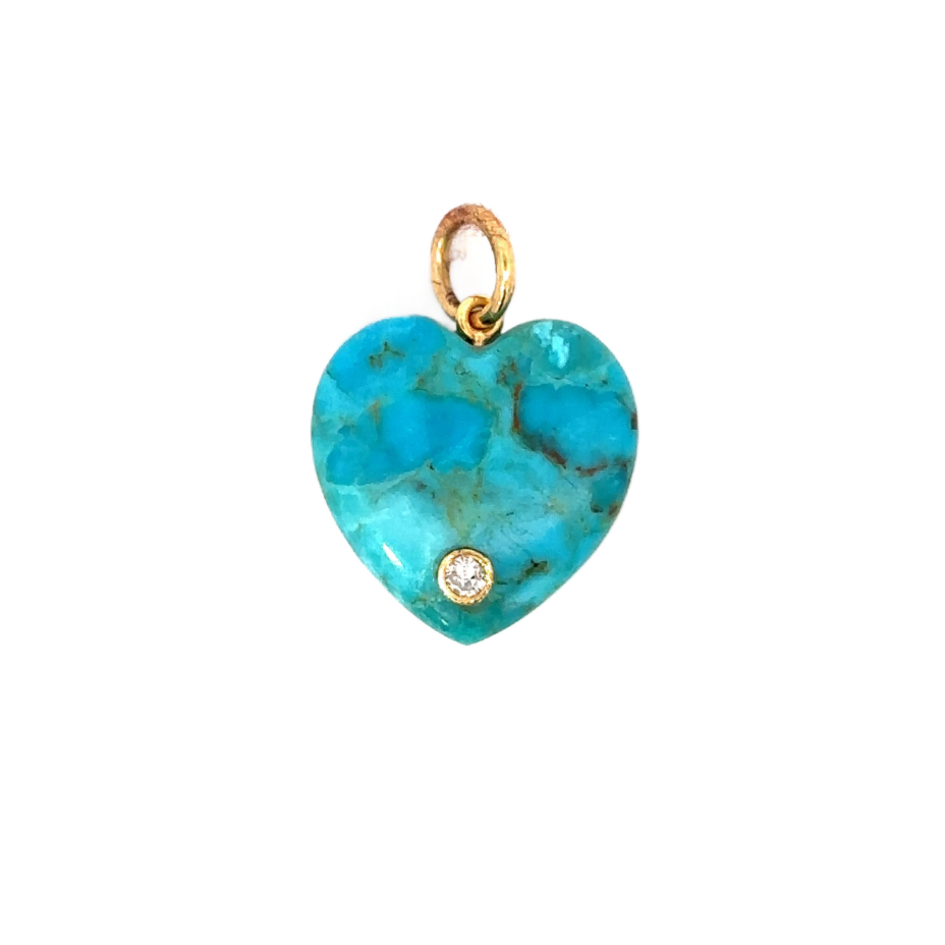 Yellow Gold Turquoise Heart Pendant with Bezeled Diamond