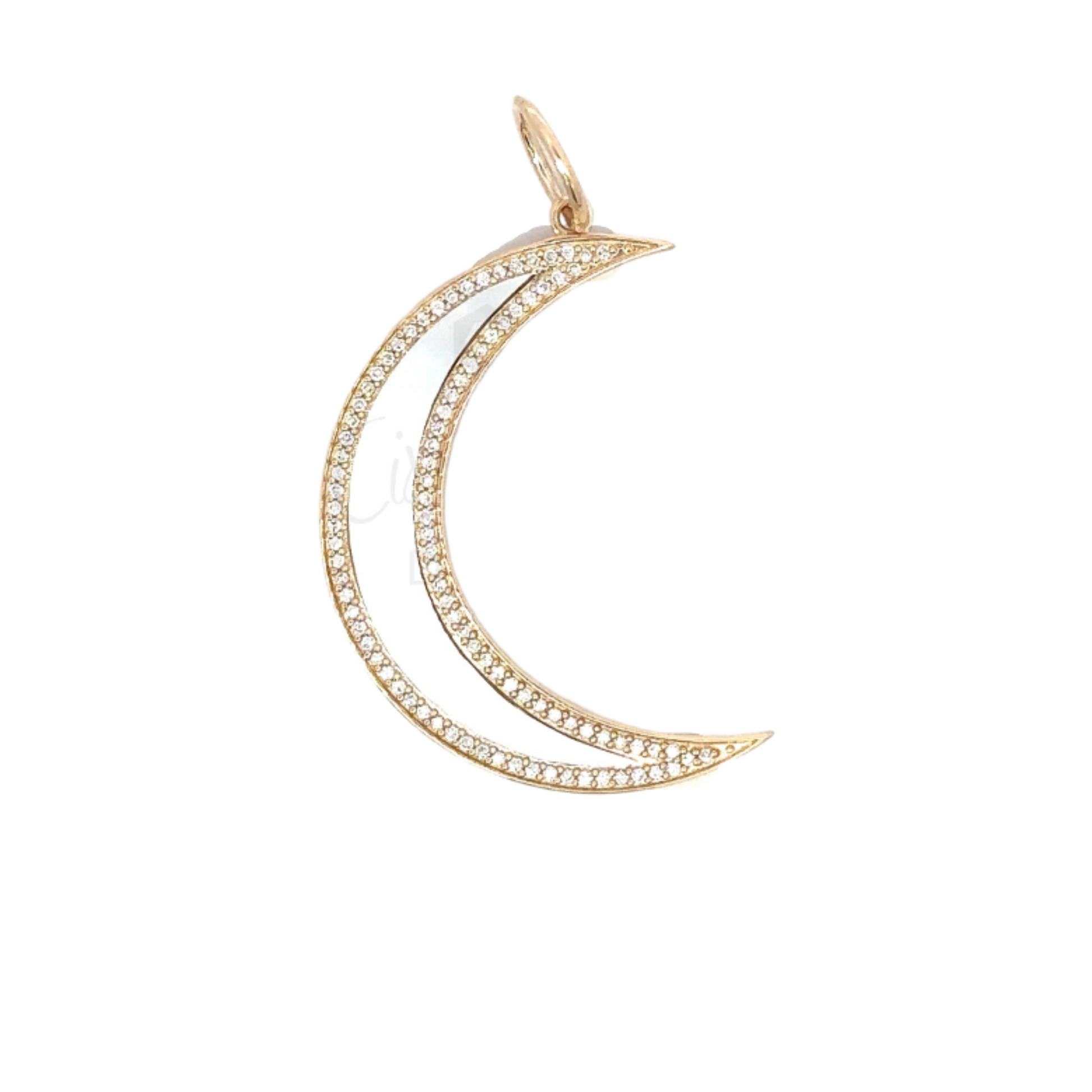 Yellow Gold White Mother of Pearl Crescent Moon Pendant with Pave Border